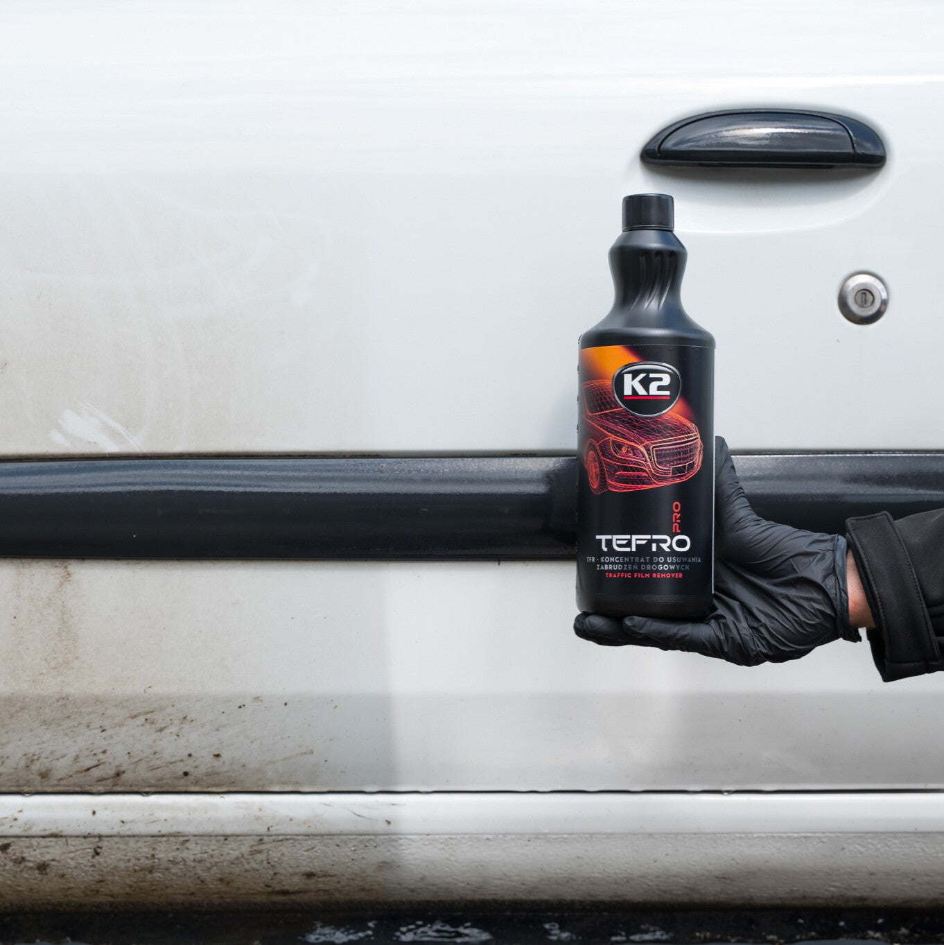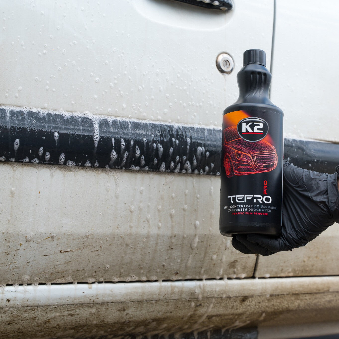 A K2 TEFRO egy fejlett Traffic Film Remover (TFR), amelyet a legmakacsabb útiszennyeződések gyors és hatékony eltávolítására terveztek a fényezésről, acél- és könnyűfém felnikről, gumiabroncsokról és műanyag karosszériaelemekről. Innovatív, alacsony habzású formulájának köszönhetően jelentősen lerövidíti a munkafolyamatot, biztosítva a magas mosási hatékonyságot és a jármű tökéletes előkészítését a további ápolási lépésekhez, beleértve a kézi mosást vagy a detailinget is.