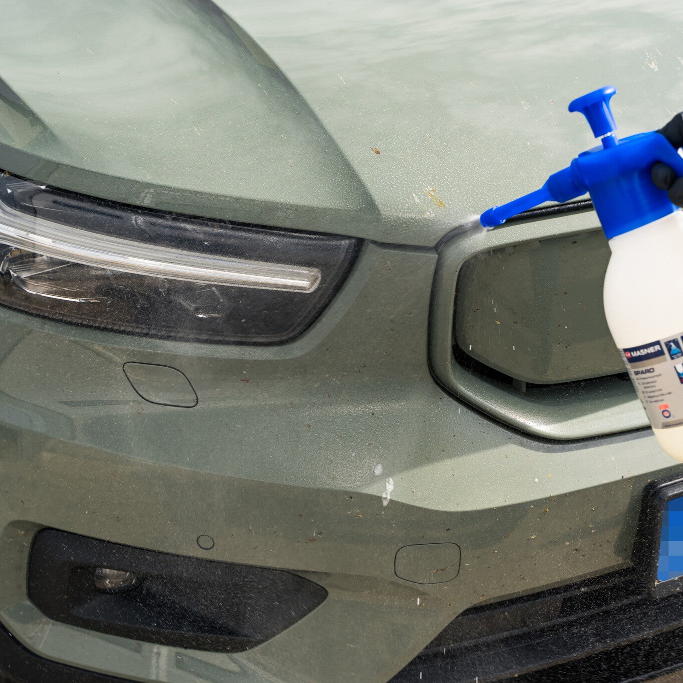 Ez a termék kiemelkedően teljesít mind az előmosás során, mind pedig a makacs szerves szennyeződések, például a rovarmaradványok és zsíros útiszennyeződések eltávolításában. Különösen hatékony a közlekedési film, az olaj- és zsírszennyeződések, a légköri szennyeződés, a téli útsó és a madárürülék eltávolításában, így sokoldalú eszköze a mindennapi járműápolásnak. Könnyen alkalmazható – használható alacsony nyomású permetezővel vagy szórófejes flakonnal, ami kényelmes és teljes kontrollt biztosít a tisztítási folyamat felett.
